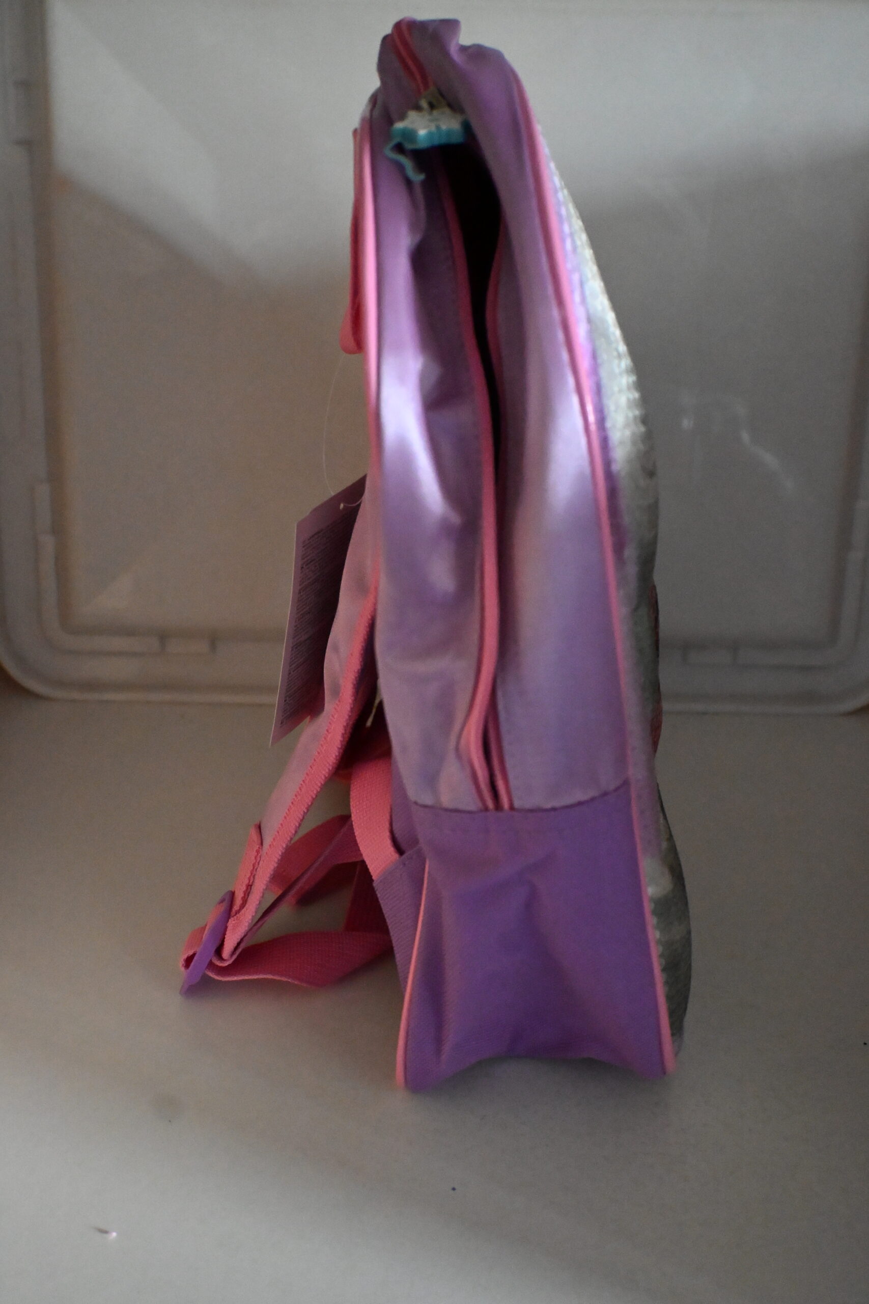 Dieser wunderschöne Disney Frozen Rucksack begeistert kleine Fans der Eiskönigin mit seinem schimmernden Elsa-Motiv und der „glitzernden Paillettenfront“. Die Kombination aus Rosa und Lila sorgt für einen märchenhaften Look, während die gepolsterten, verstellbaren Schultergurte optimalen Tragekomfort bieten. Der Rucksack verfügt über ein großes Hauptfach mit Reißverschluss, eine seitliche Netztasche für Trinkflaschen und eine praktische Aufhängeschlaufe. Perfekt geeignet für Kindergarten, Vorschule oder kleine Ausflüge. Offiziell lizenziertes Disney-Produkt – robust, pflegeleicht und ein echter Hingucker für alle Frozen-Fans.