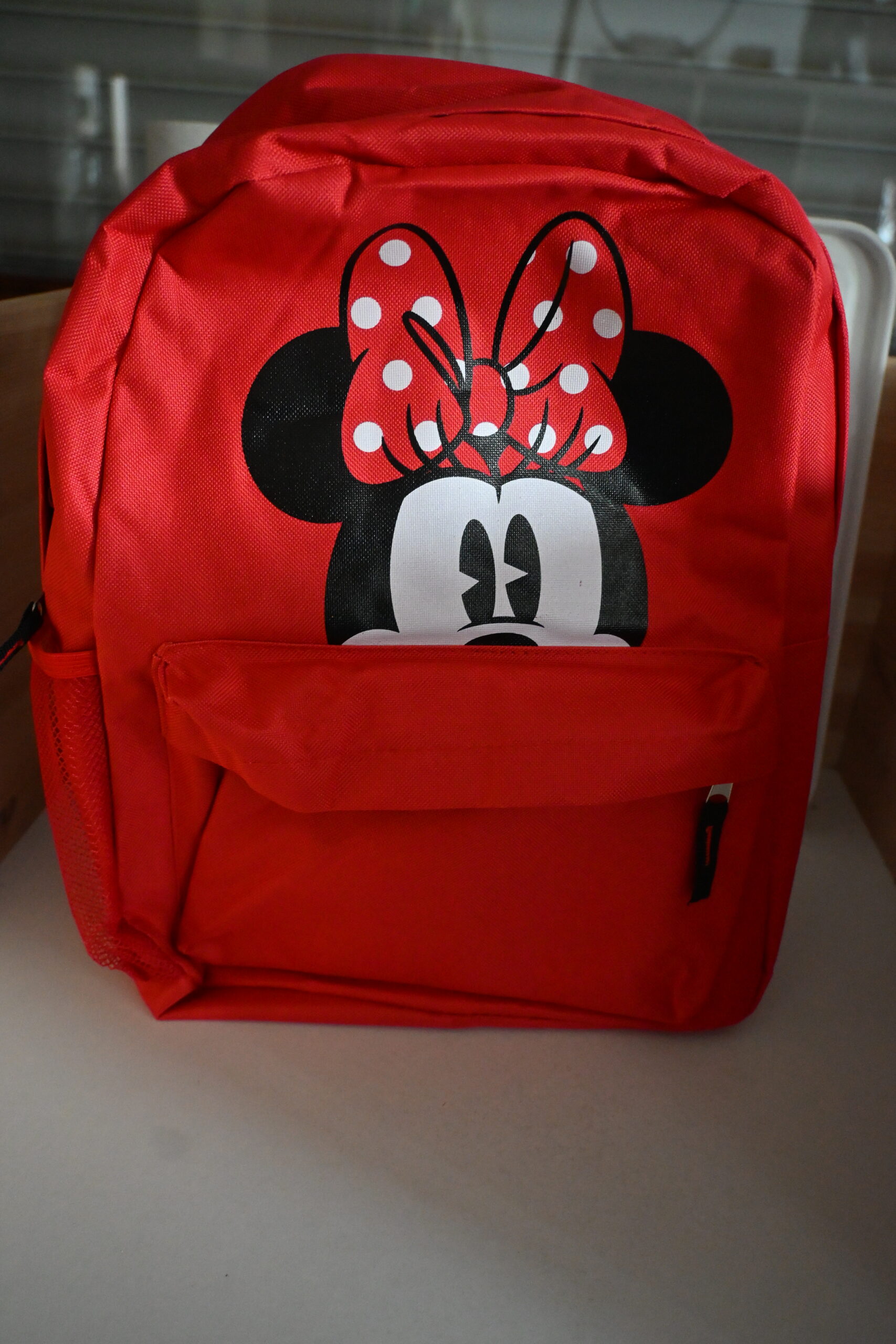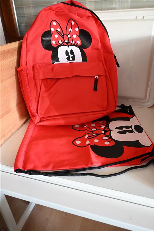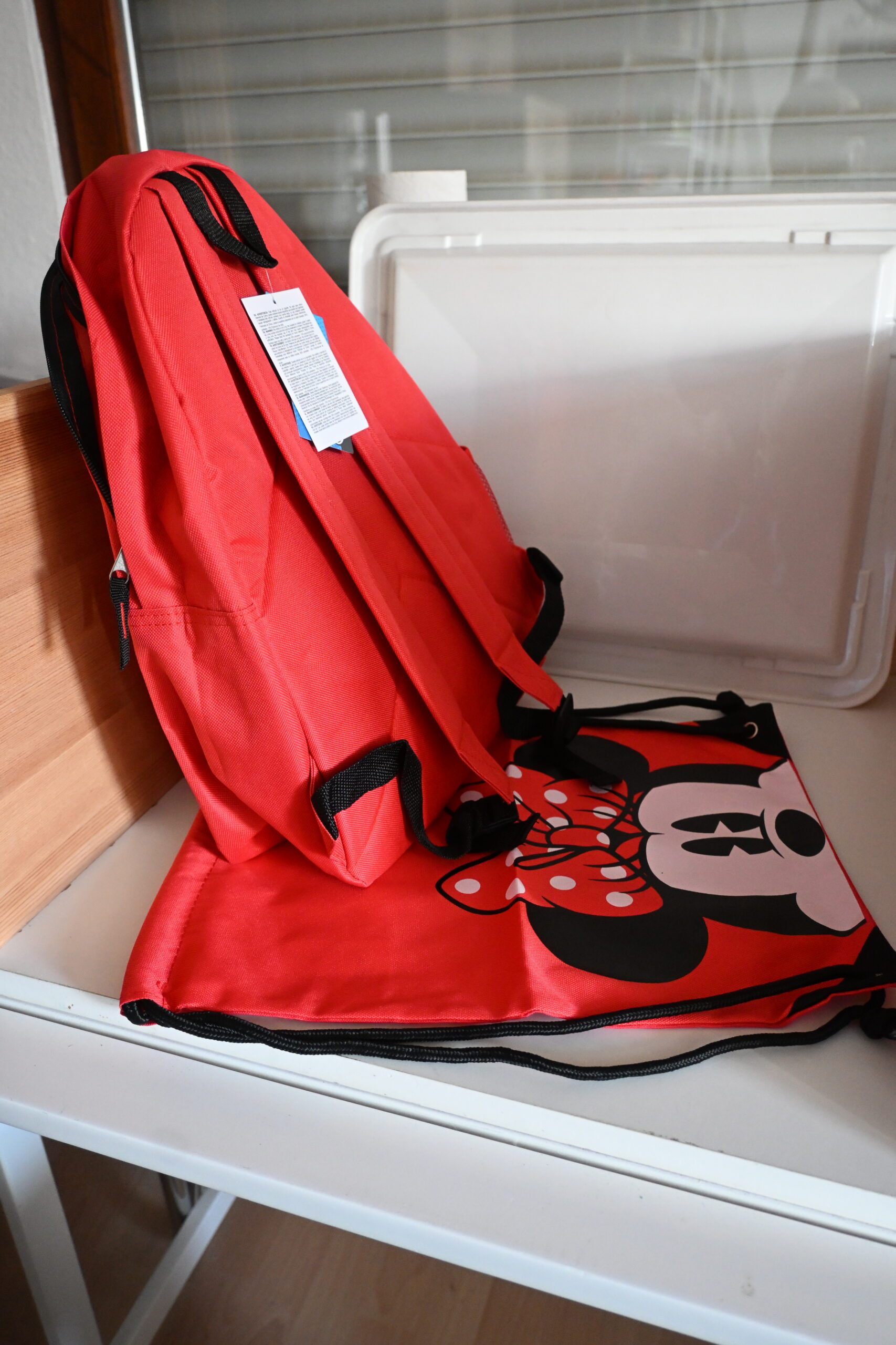Das liebevoll gestaltete Minnie-Mouse-Gesicht mit der typischen roten Schleife macht dieses Set zu einem echten Hingucker – egal ob im Kindergarten, auf dem Spielplatz oder unterwegs mit Freunden. Beide Taschen sind aus pflegeleichtem Polyester gefertigt und lassen sich leicht reinigen.
